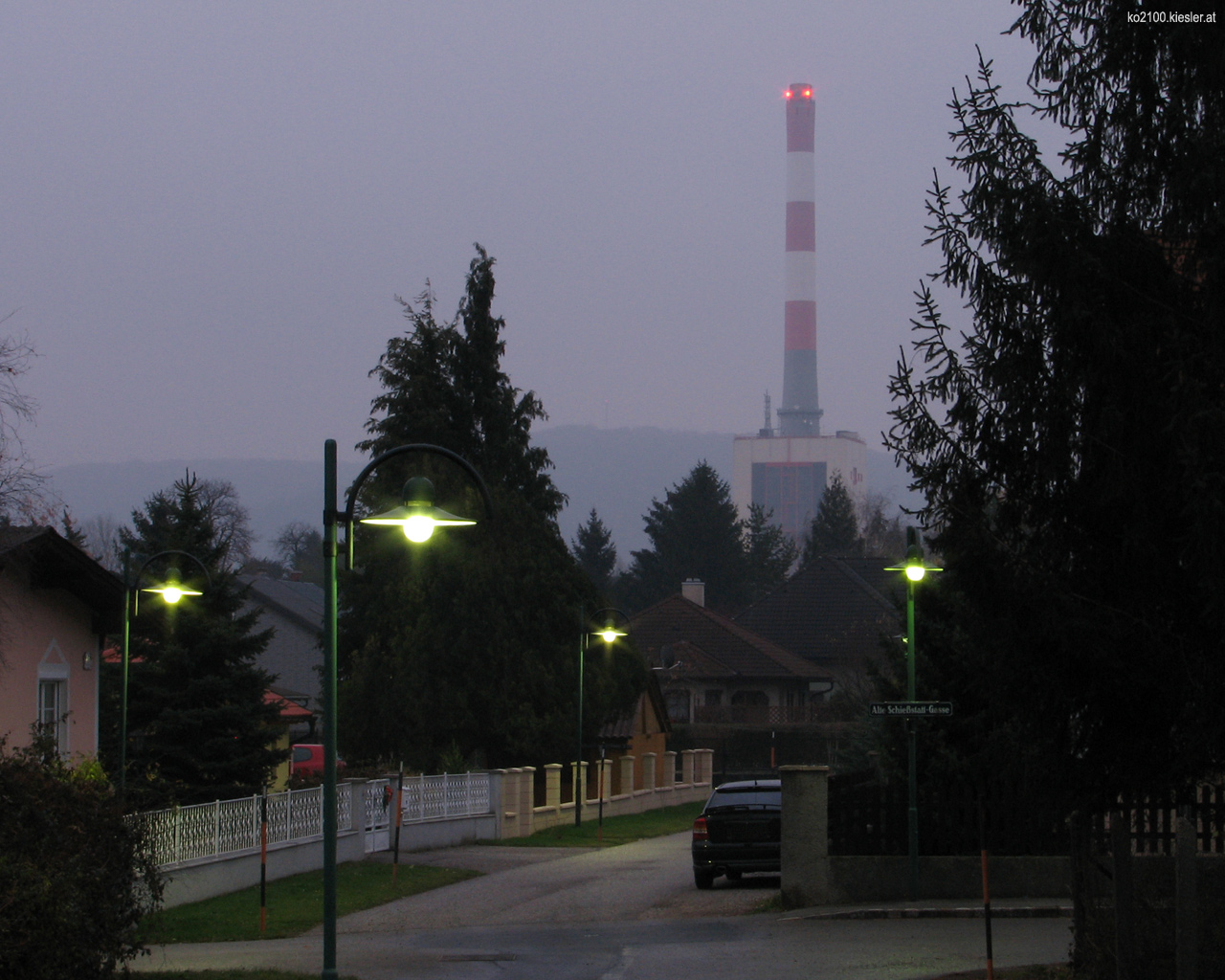 Damit die Zeit bis Weihnachten schneller vergeht, möchte ich meinen werten Besuchern ein Vorweihnachtsgeschenk machen. Bei meiner heutigen Fahrt durch Korneuburg kamen Dämmerung und Nebel zusammen. Ergebnis war ein besinnliches Photo des eigentlichen Korneuburger Wahrzeichens -- des Wärmekraftwerks.